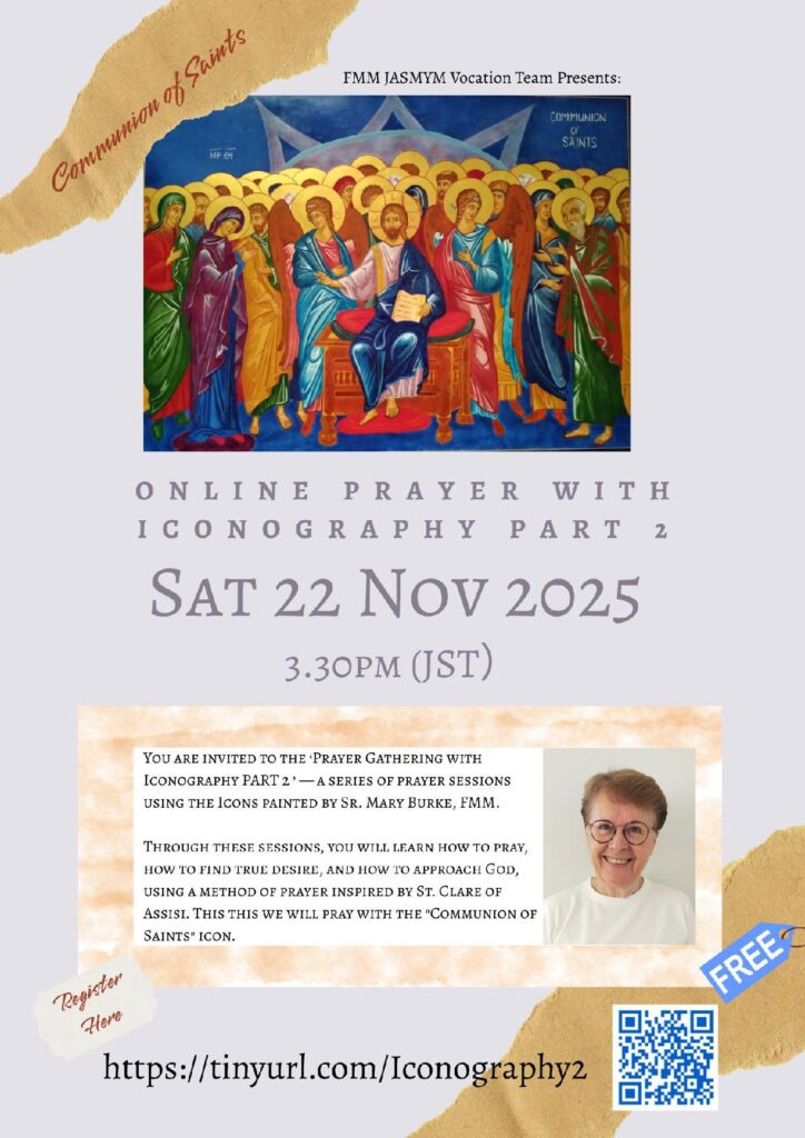 【申込先掲載 11月22日15時30分~】 イコンで祈るPart2 受付中です! fmm staff (admin)2025年11月13日 祈りの集い・黙想会のお知らせ お申し込みは下記リンクよりどうぞ!ご参加をお待ちしています。 https://tinyurl.com/Icnonography2 ← FMM日本管区の歩み-88