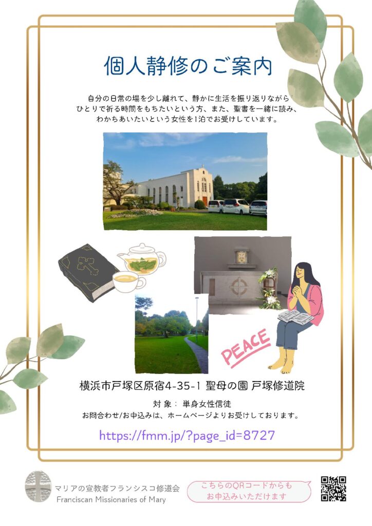 このご案内は、一般の方で日常を離れてゆっくりお祈りしたいという方向けです。